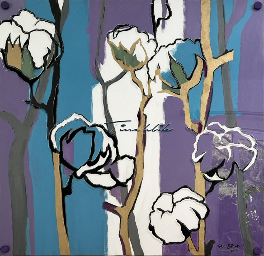In this work from the Peace series, John Black reflects on the fragile balance between nations through the symbolic language of their national flowers. The plum blossom — emblem of China — and the peony — symbol of Taiwan — are placed in visual dialogue, sharing a single pictorial space yet divided by a subtle boundary.<br />