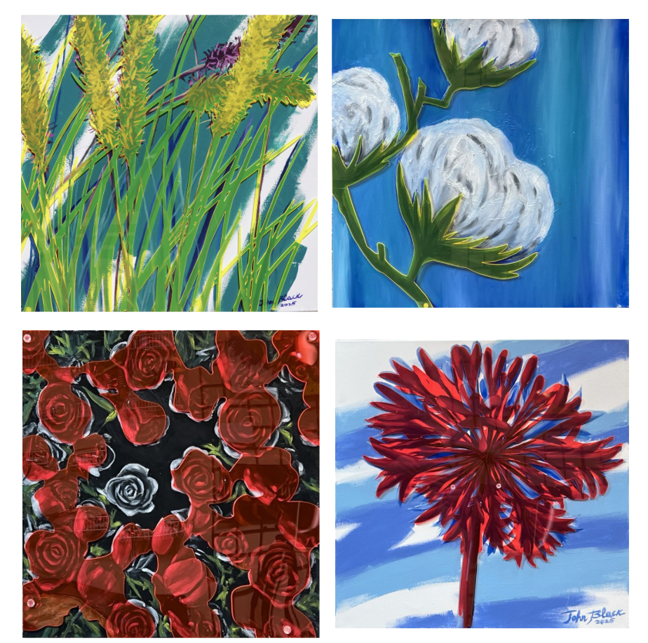In Floral Quadratum: Four States of Nature, John Black brings together four distinct visual and emotional interpretations of flora — Spikes, Cotton, Roses, and Cornflower — into a single monumental composition. United within the geometry of a square, these works form a visual and philosophical dialogue about life, color, and transformation.<br />